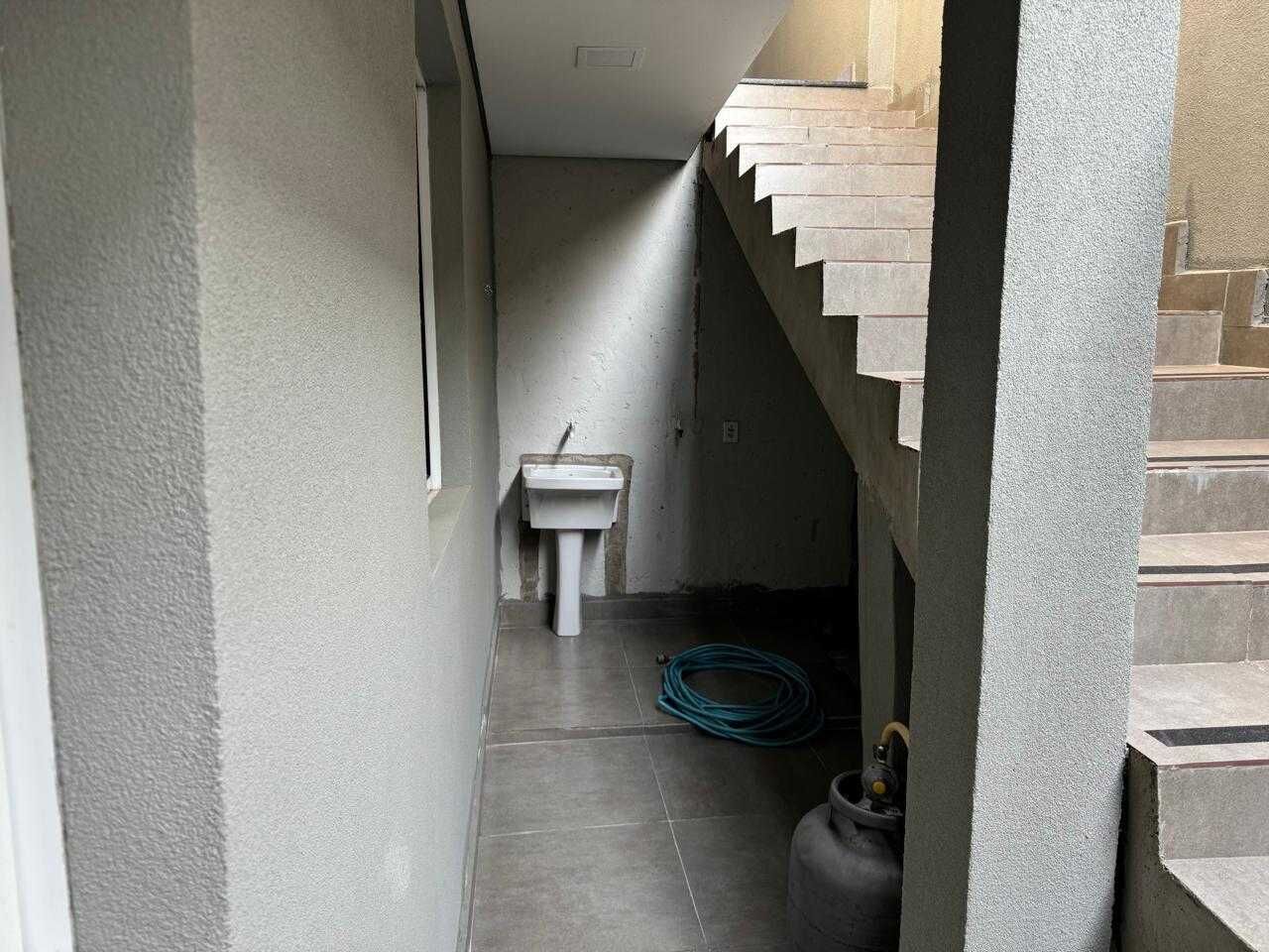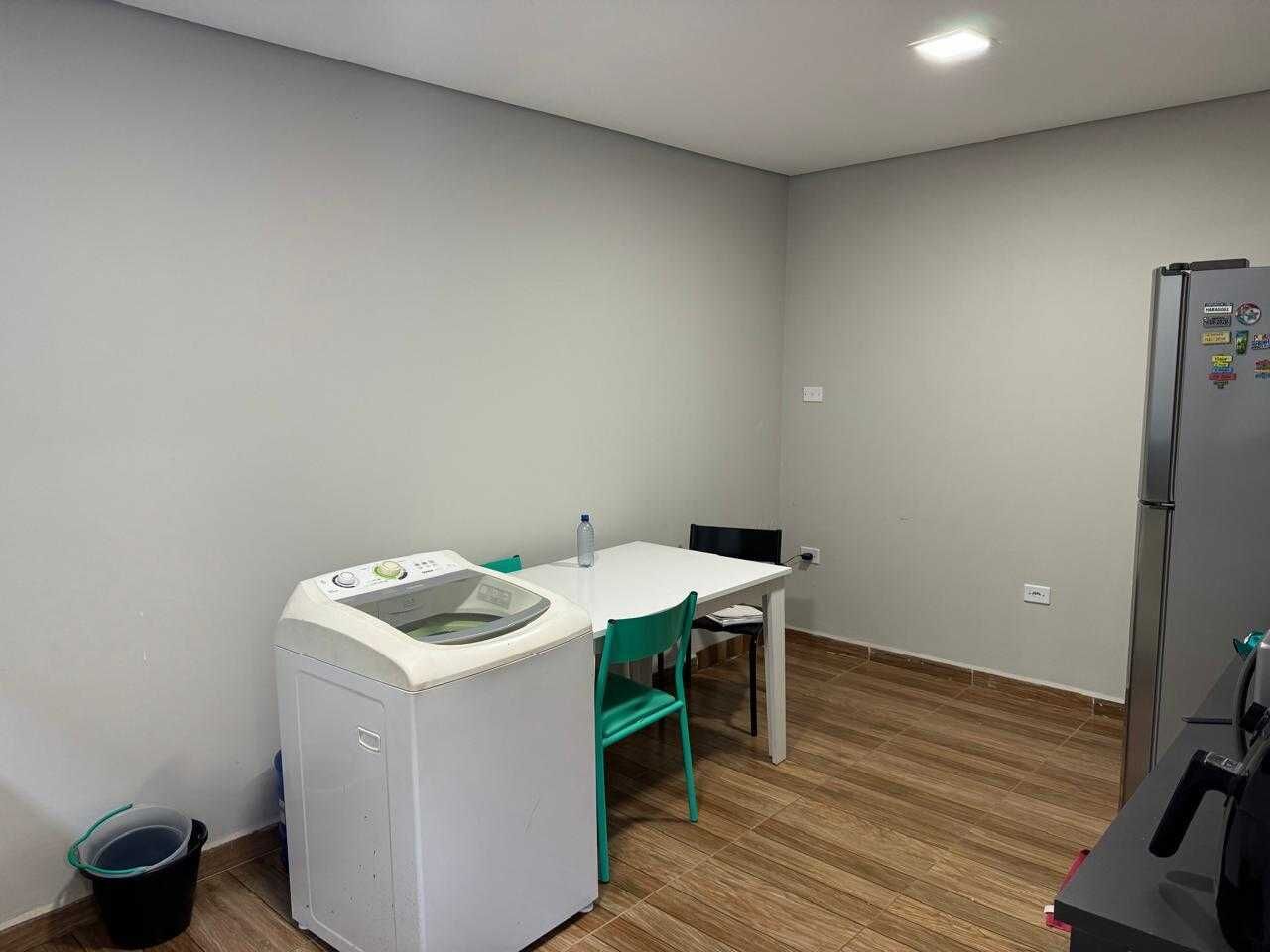 casa sobreposta com 2 quartos sala e cozinha conjugada, 1 banheiro, lavanderia e área de serviço em baixo.